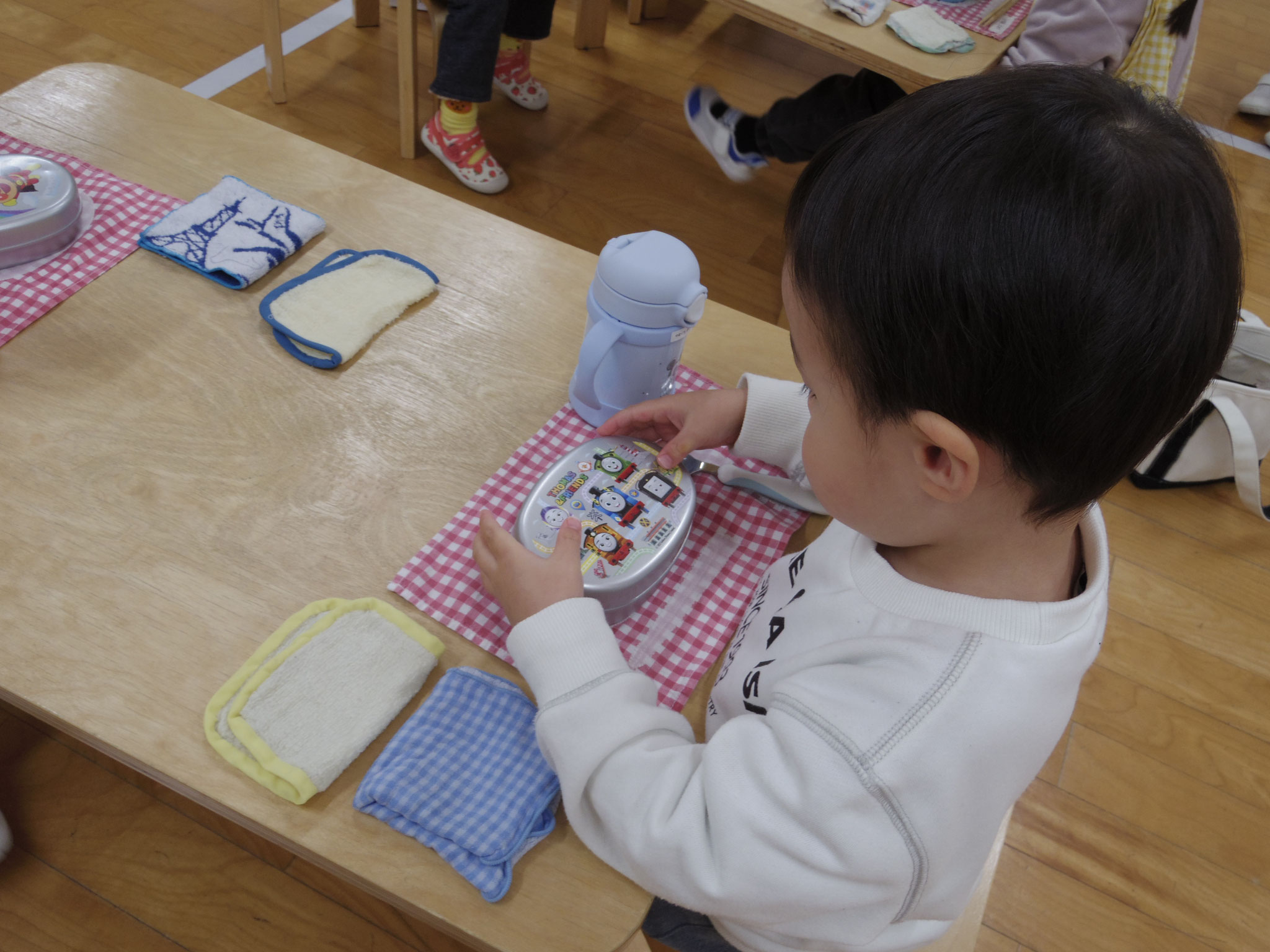 お弁当を楽しみながら、ひとりで食べる練習を重ねます。