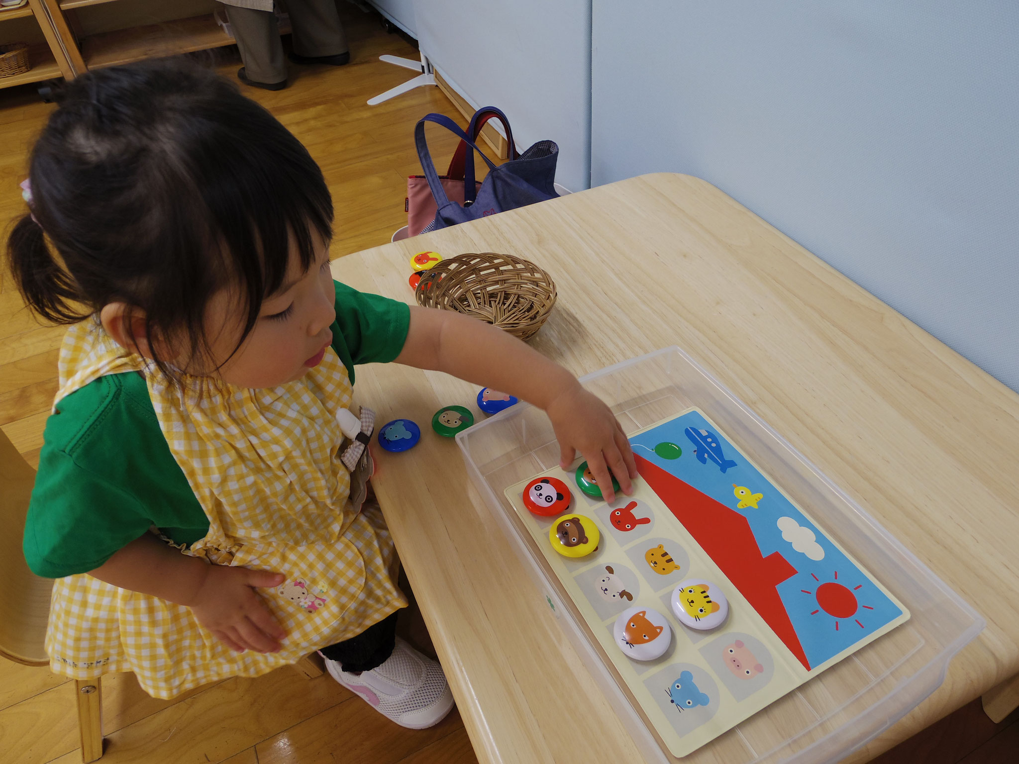3歳の終わりまでにしっかり伸ばしておきたい視覚や触覚の活動に取り組みます。