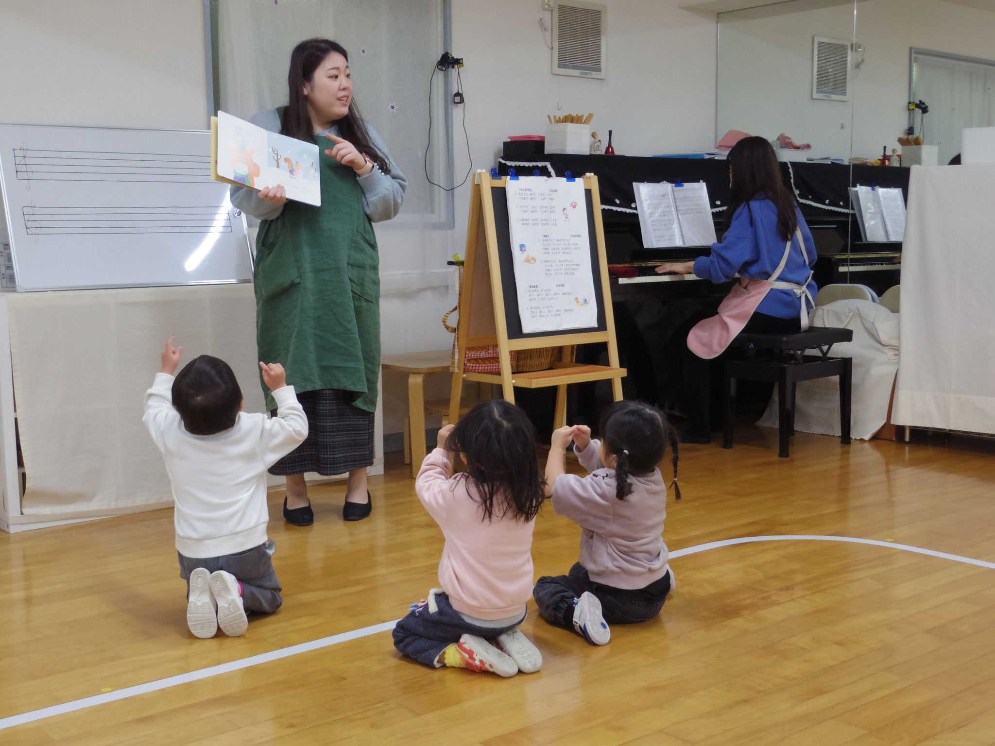 メロディやリズムにのせた言葉や先生の語る言葉を楽しく聞きながら語彙が豊かになります。