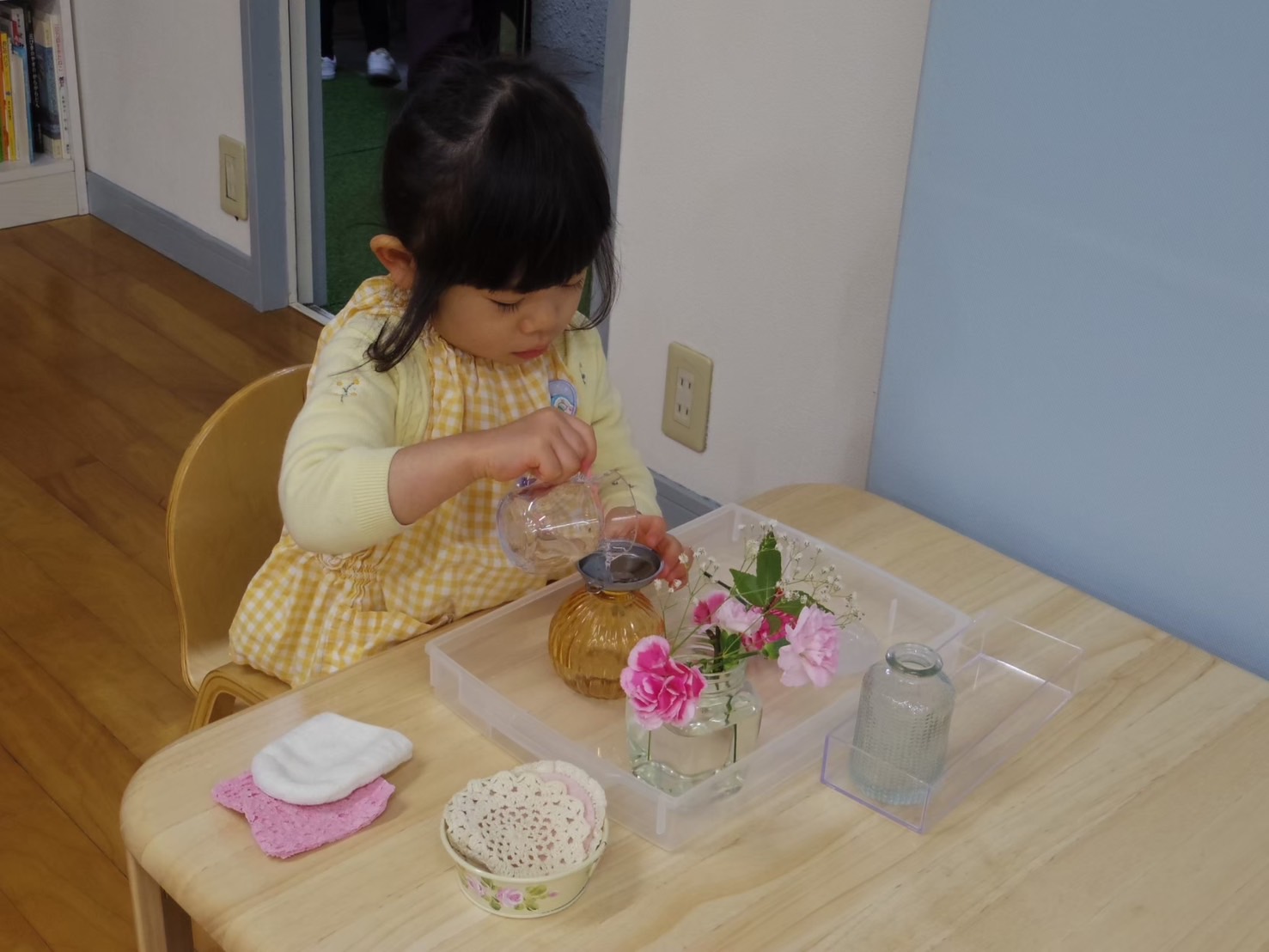 お子様が慣れてきたら、モンテッソーリ活動の時間は外出していただくなど、少しずつ離れる時間を増やしてみてください。